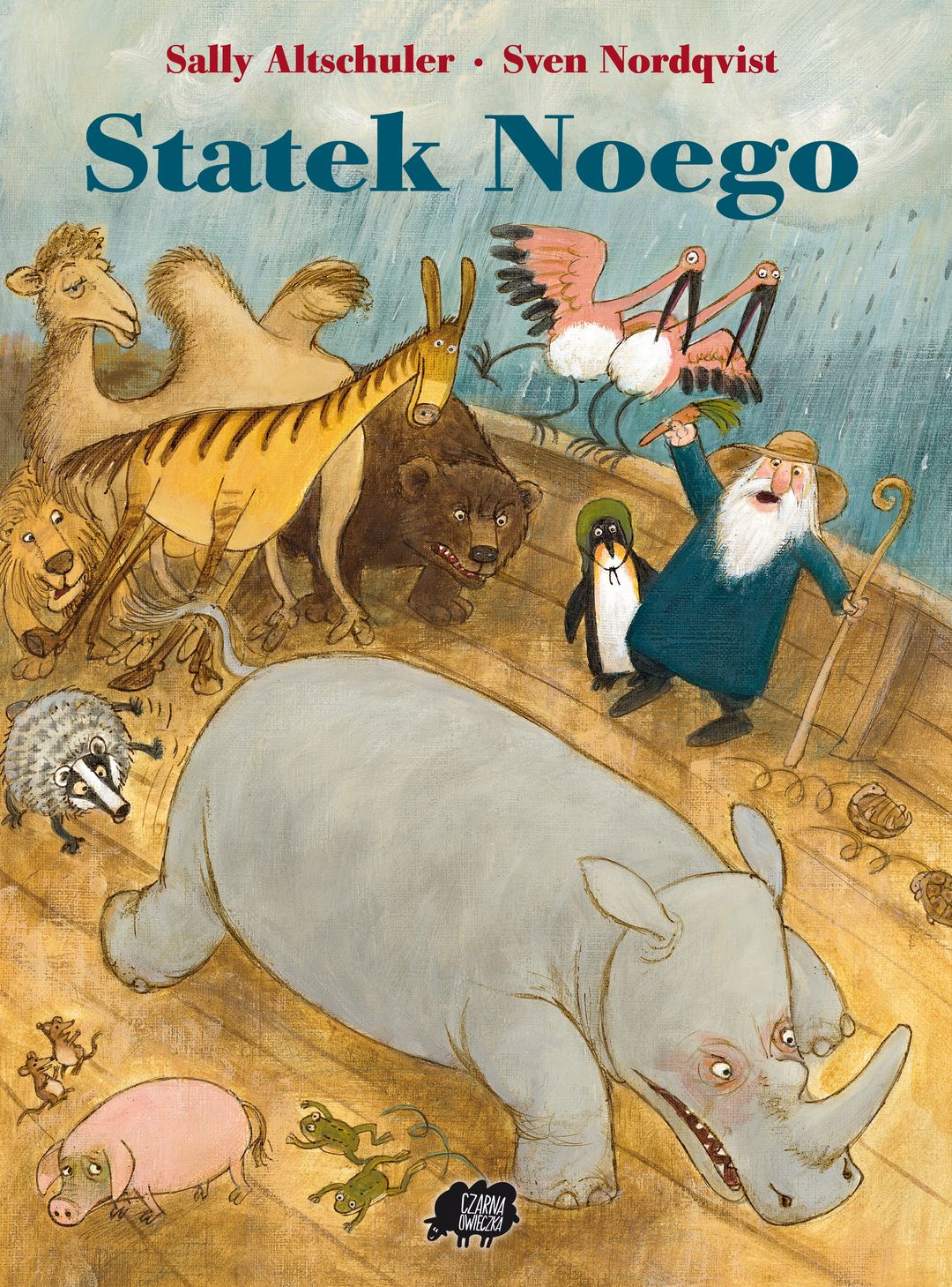 Jest to historia inspirowana biblijną opowieścią o Arce Noego, z pięknymi ilustracjami Svena Nordqvista, autora książek o Pettsonie i Findusie. Ciężkie jest życie nosorożca, którego nikt nie lubi. Trudne zadanie ma również Noe, który musi sprawić by wszystkie zwierzęta na statku żyły ze sobą w zgodzie. Zwłaszcza, gdy wszystko to dzieje się właśnie wtedy, kiedy na świecie zaczyna się wielka ulewa. Na szczęście Noe jest bardzo pomysłowy, a marudny i wiecznie niezadowolony nosorożec okazuje się ogromnie przydatny. To on ratuje statek przed zatonięciem, kiedy w burcie powstaje dziura pracowicie wykuta przez dzięcioła.